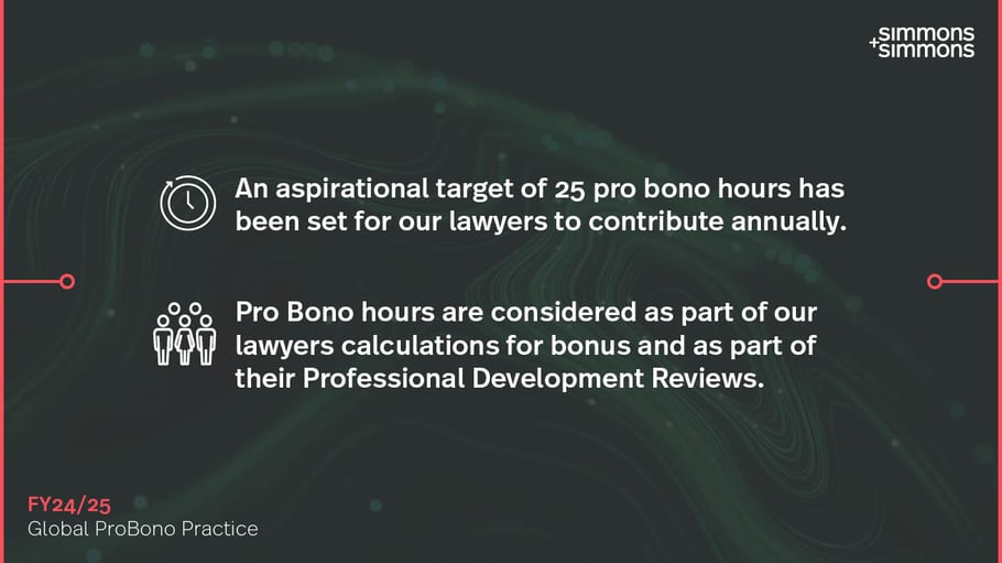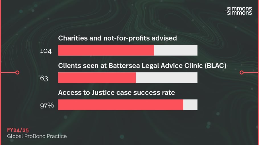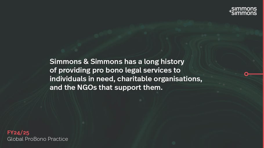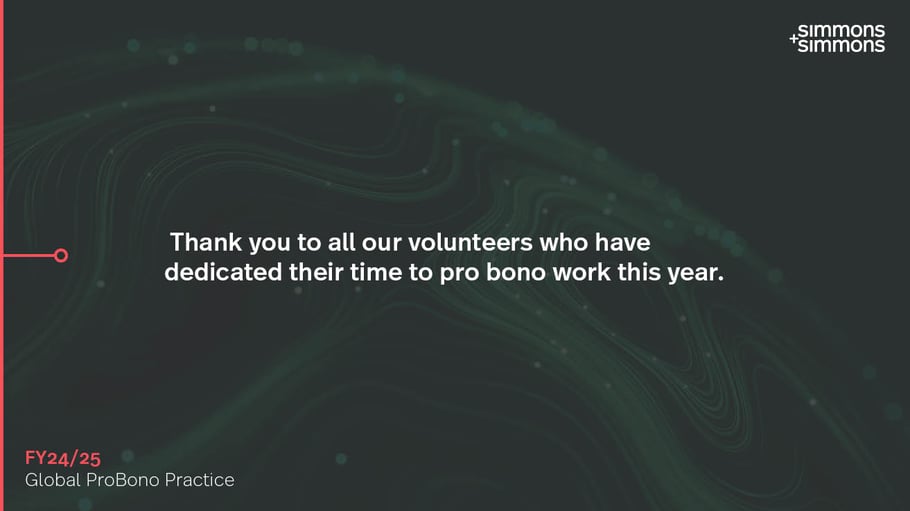 Our pro bono work is wide reaching and reflects our firm’s commitment to creating positive impact and outcomes for society and the planet.