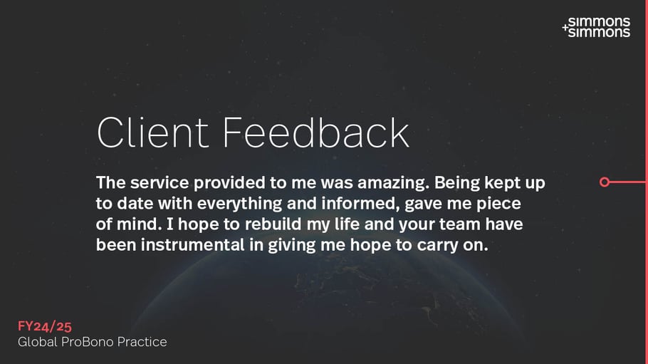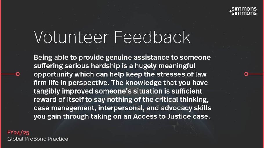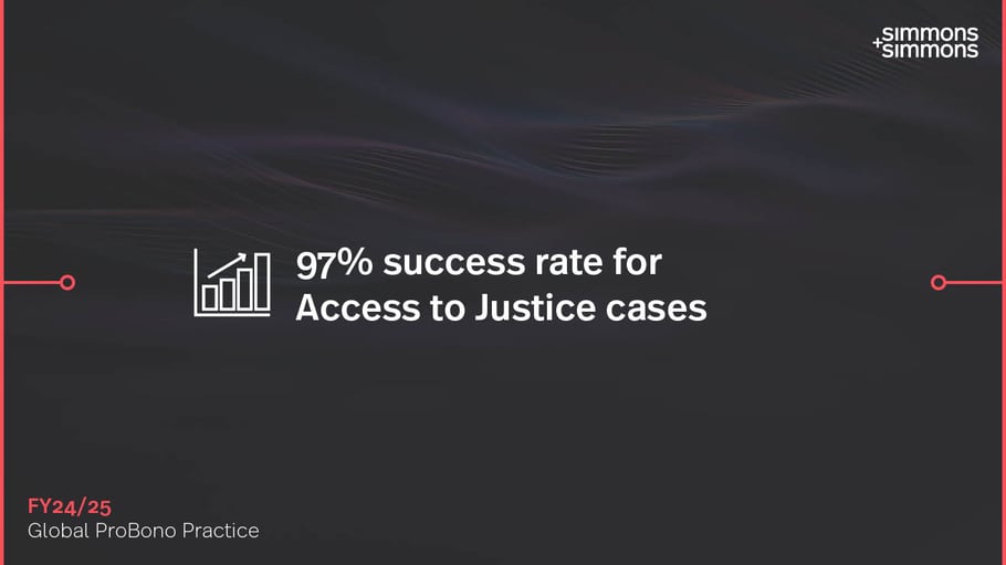 Through this programme, our lawyers, working alongside in-house legal teams from a variety of clients, provide free, end-to-end legal support to challenge disability benefit appeals. We are proud to report a 97% success rate in the last financial year. These successful appeals have resulted in over 320 individuals receiving backdated payments totalling £1 million, offering critical financial support to those who need it most.