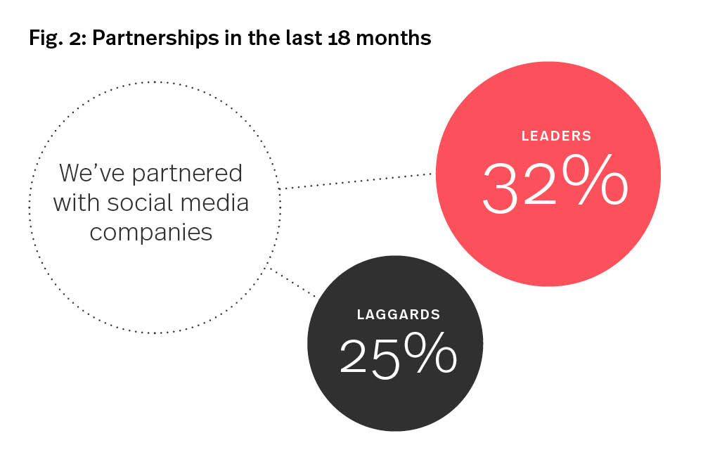 The Facebook/Cambridge Analytica scandal and the French data protection regulator’s fine against Google have created an obvious nervousness around collaborating with digital media platforms. Yet, these organisations offer a deep level of insight around consumer behaviour. This is often the final piece of the jigsaw in your data commercialisation efforts. Data leaders are wary, yet they are proving to be more open to working with social media platforms than data laggards. It’s likely that they have a better understanding of the risks and how to address them as well as what they can achieve from a successful partnership.