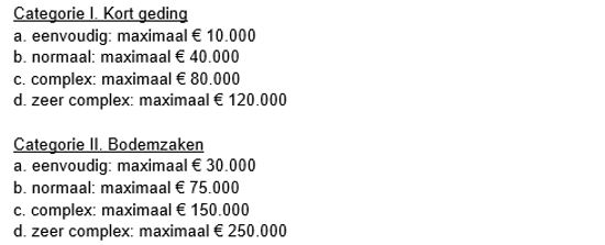 De door de Rechtspraak vastgestelde indicatietarieven zijn ingedeeld naar de volgende categorieën subgroepen: