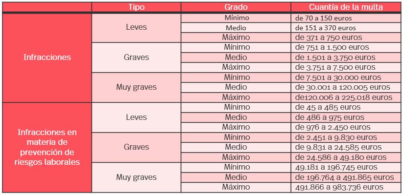 AUMENTO DEL IMPORTE DE LAS SANCIONES LABORALES
