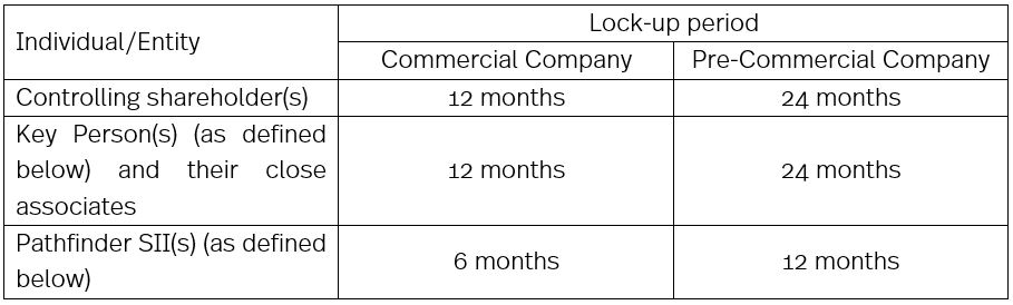 The Exchange also makes distinctions between Commercial Companies and Pre-Commercial Companies in terms of the durations of post-IPO lock-up periods applicable to different individuals or entities and their close associates (where applicable), imposing more stringent requirements on the Pre-Commercial Companies, as summarised in the table below: