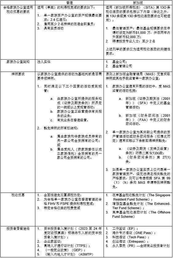 香港和新加坡是全球超高净值人士考虑设立境外家族办公室的热门选择,以下就两地有关家族办公室的基本制度提供简单对比。
