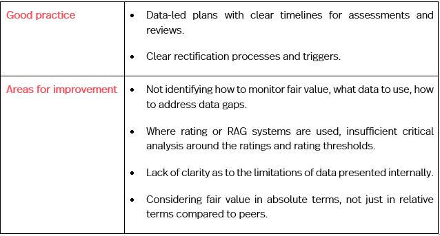 The really key theme that seems to emerge from the FCA's findings, in our view, is that firms need to gather sufficient data and analyse it with a sufficient amount of critical thinking, including being clear internally as to what the practical limitations of the data are. While fair value is ultimately a judgment call, the quality of the judgment will depend on the quality of the data and analysis that supports it.
