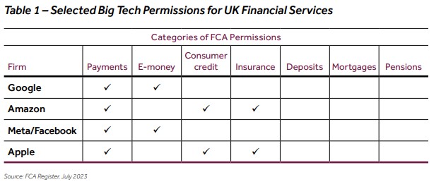 The statement also includes a number of interesting commercial notes on the growing influence of these firms in financial services, including setting out selected Big Tech presence in the differing sectors of the industry - as set out below and at Appendix 1.