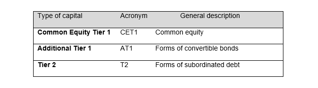 The definition of capital and the capital ratios are derived from CRD4. The three tiers of capital are set out in Table 2: